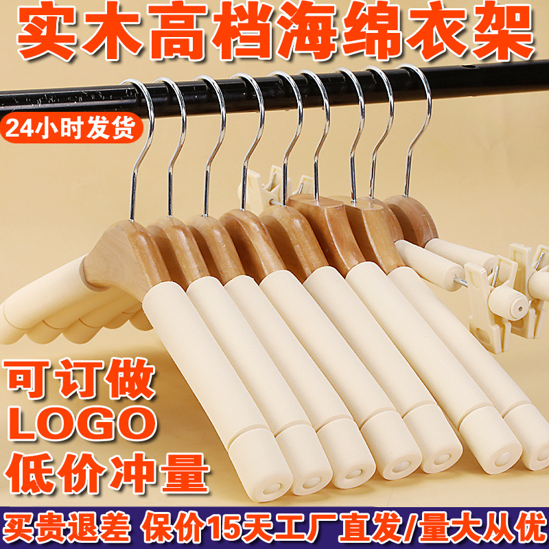 実木海綿ハンガー滑り止め家庭用無痕肩角多機能クローゼット収納フック木ハンガーズボンフレーム木
