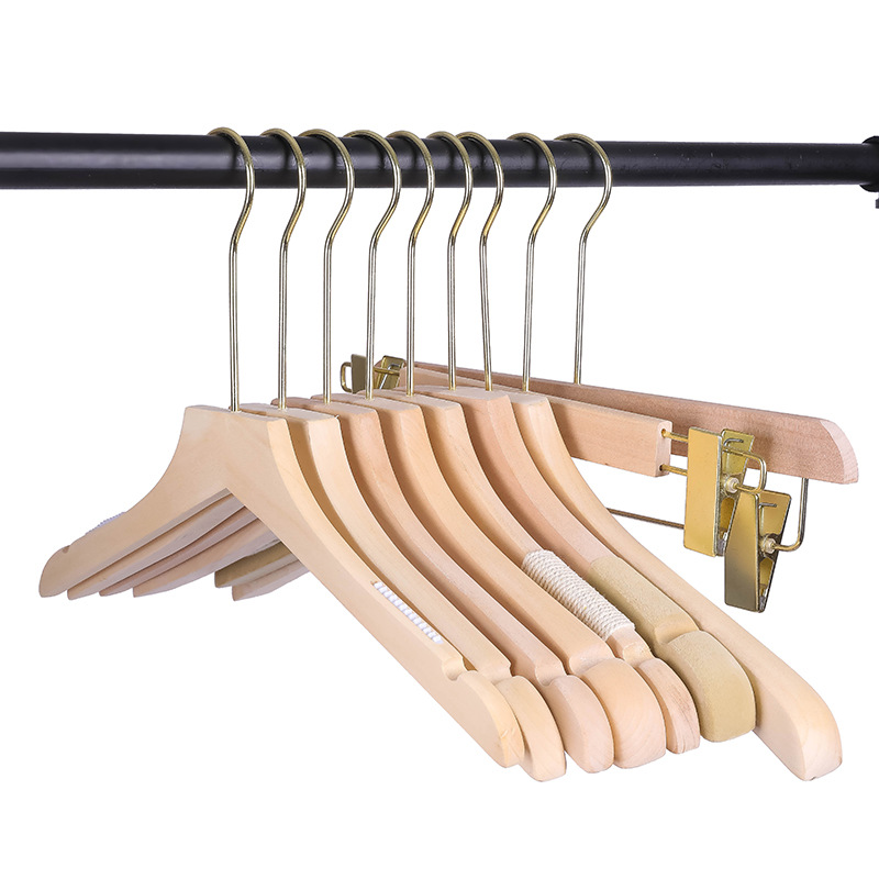 無塗装木製衣類ハンガー、木製衣料品店専用洋服ハンガー、女性用天然木衣類ハンガー、卸売用滑り止め付きズボンハンガー