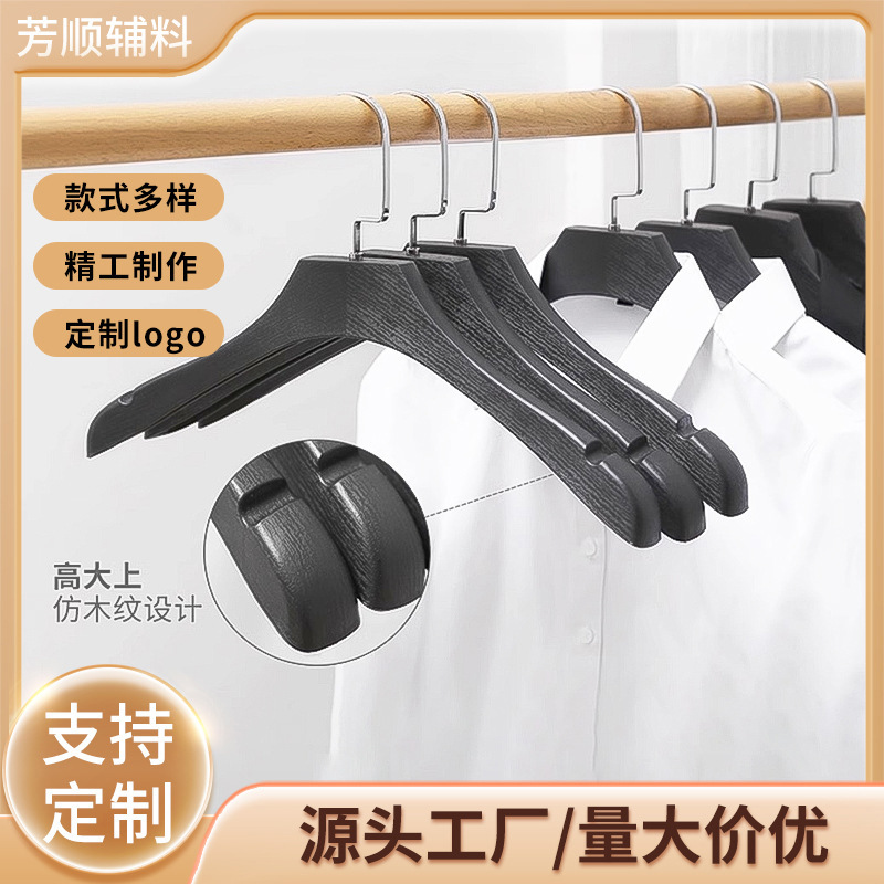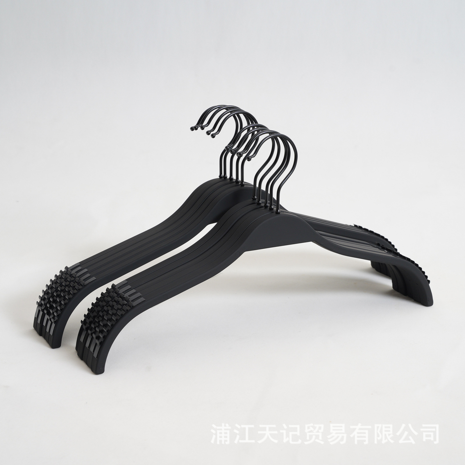 卸売大人の模造木目調衣類ラック衣料品店特別な黒の男性と女性の滑り止めシームレスなワイドショルダープラスチック衣類ラック