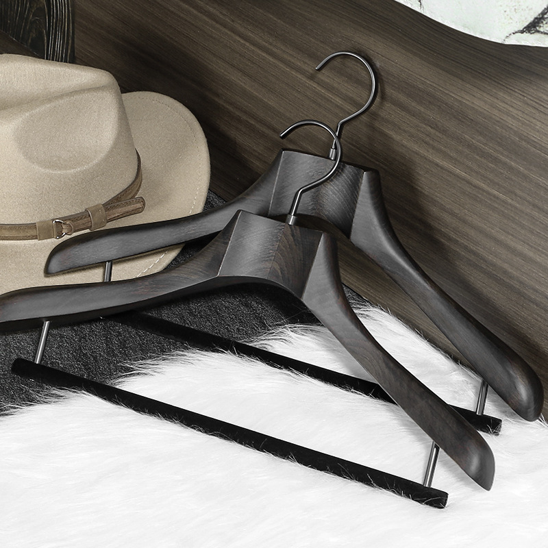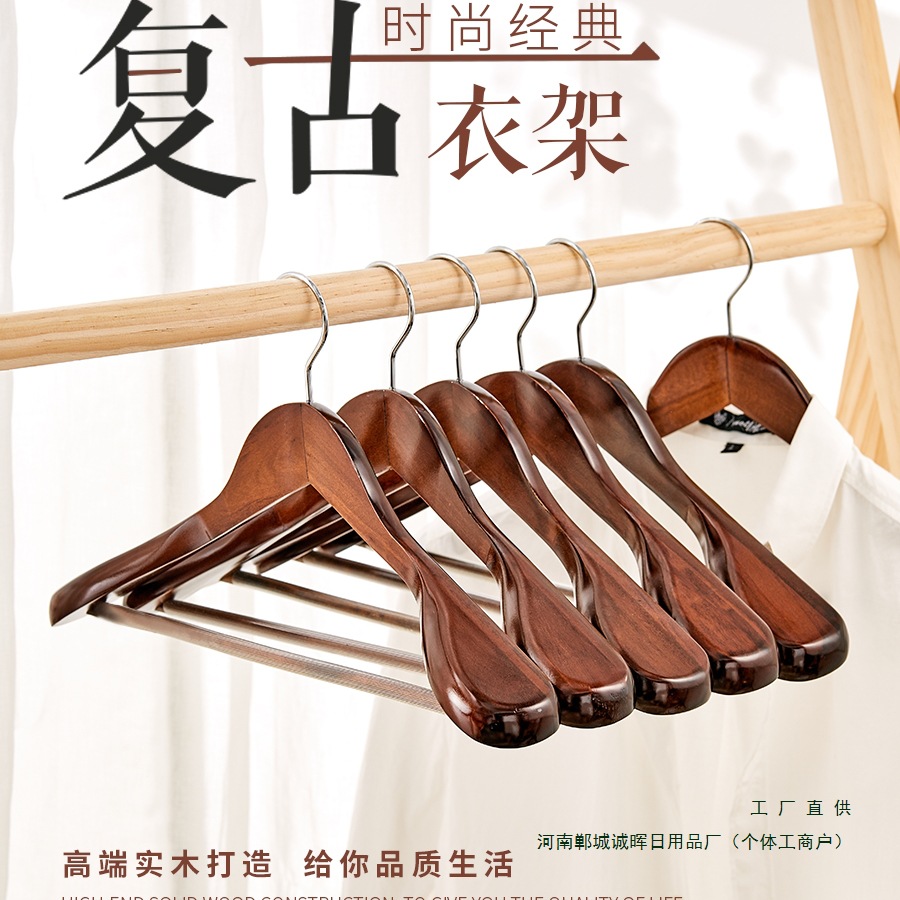 衣料品店ハンガー無垢材男性女性ハイエンド滑り止め木製肥厚衣類サポート無垢材衣類吊り下げ