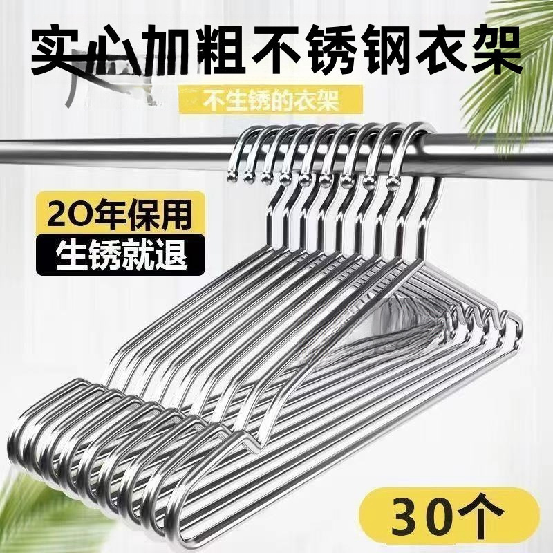 304ステンレスハンガー特太特厚中実無痕滑り止めハンガー成人ハンガー家庭用雅の心