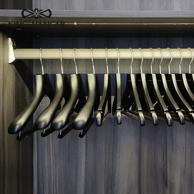 485ハンガー洋服店ドライクリーニング店男性女性黒色手感漆滑り止めプラスチックハンガーズボンクリップ卸売り