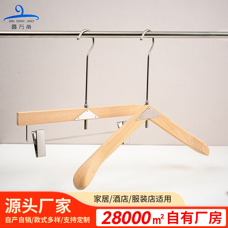 無垢材ハンガー、衣料品店専用、滑り止め、家庭用収納、ズボンクリップ、紳士服・婦人服店用洋服ハンガー、刻印入り、卸売