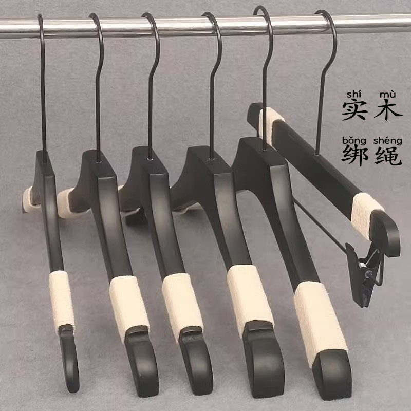 黒の実木ハンガー洋服店のストラップ滑り止めハンガーホテルの木製服掛け男性服専用服支え