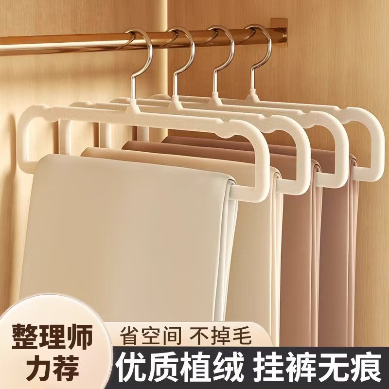 植毛ズボンラック収納専用整理師家庭用マフラーズボンハンガー無痕滑り止めタンス収納省スペース