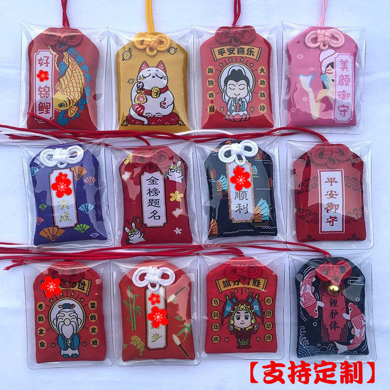 中国風のお守りの祈りの香りの包みのペンダントのお寺の祈りの刺繍の香りの袋の日本の福袋の御守
