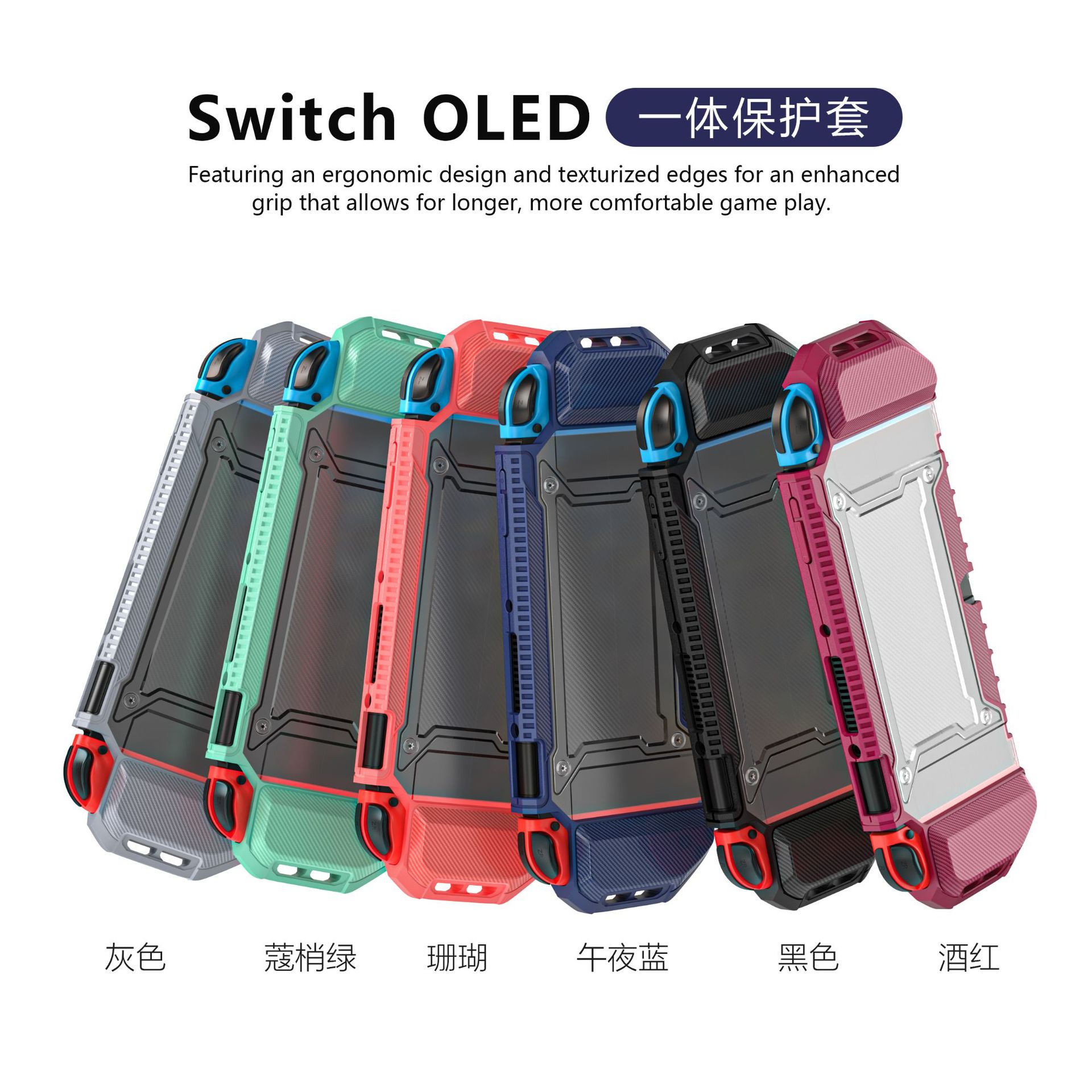 任天堂switch oledゲーム機保護カバーns純色一体転倒防止tpu + pc保護ケースを適用
