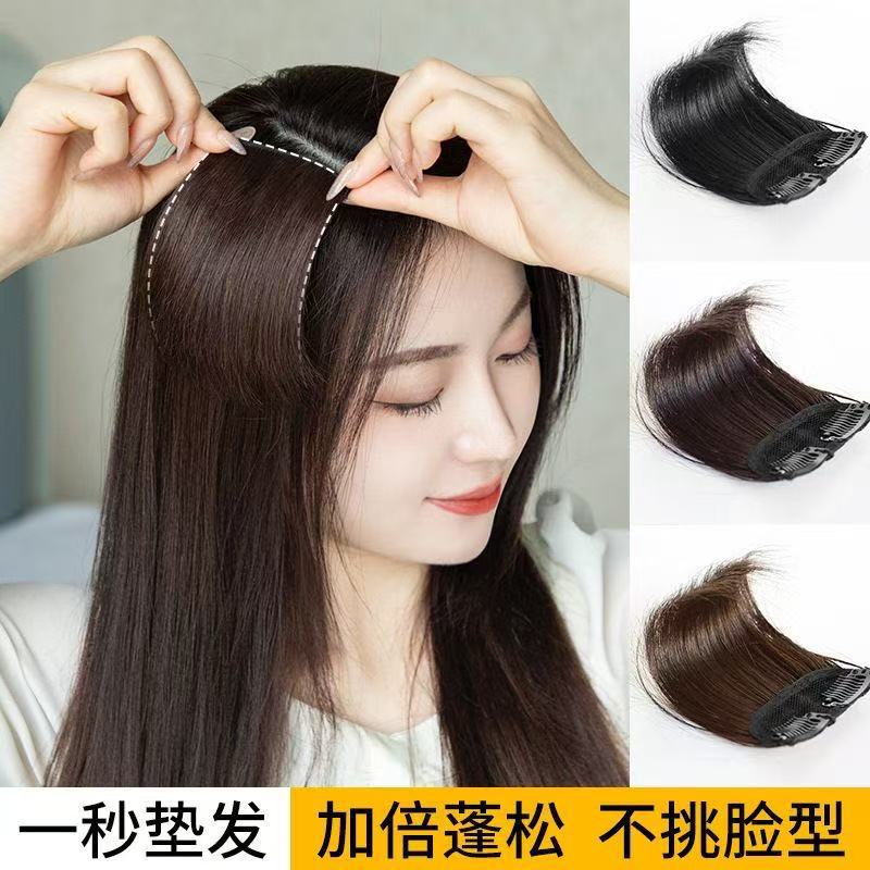 両側に厚くして髪の量を増やした人工毛、ふわふわした頭頂部、目に見えないシームレスなヘアパッド、女性用ウィッグ、頭頂部パッド