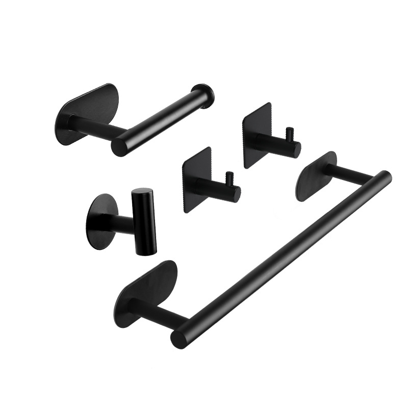 クロスボーダー304ステンレスペーパータオル棚セット穴なし風呂金物ストラップタオルフレームセット黒セット