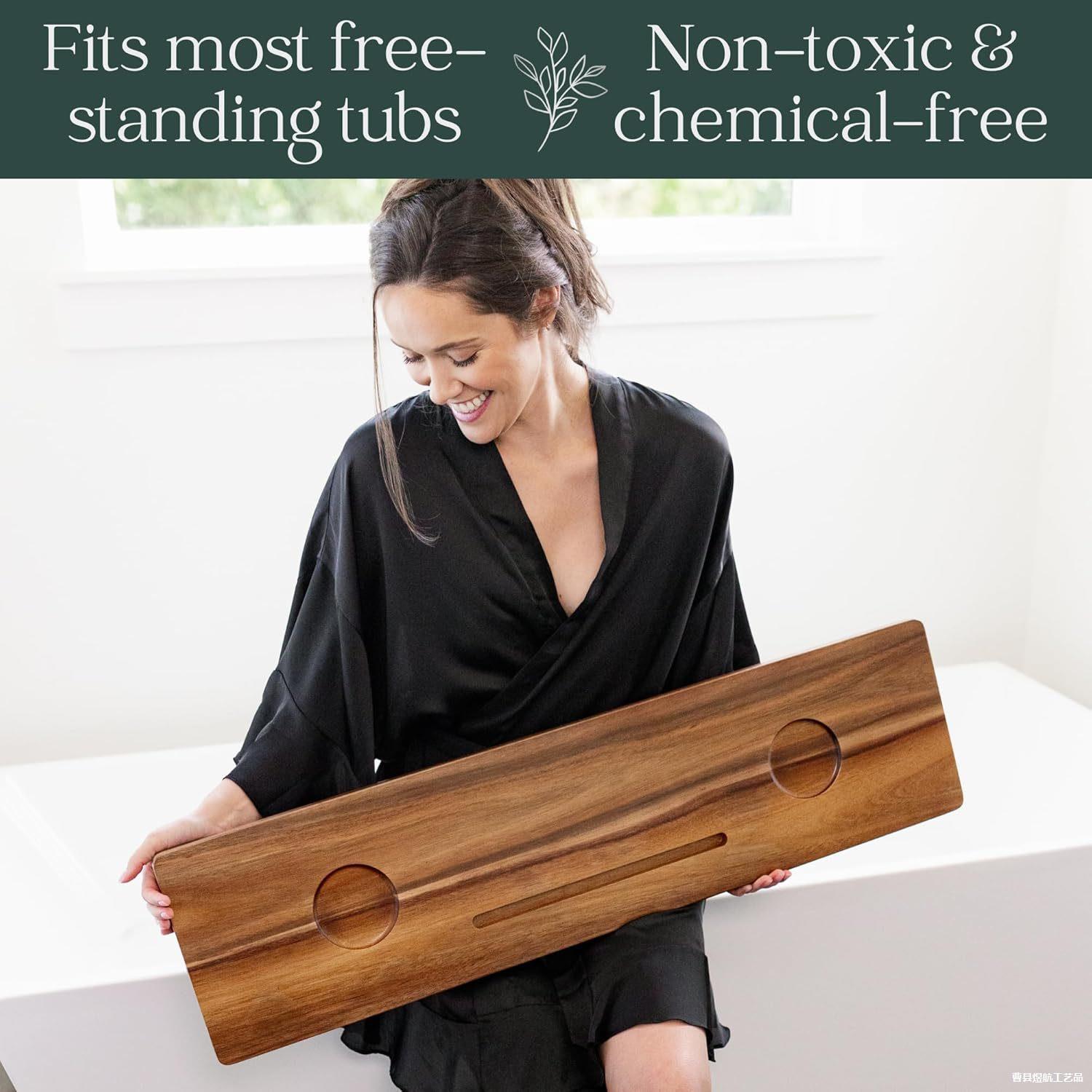 国境を越えた現代のシンプルなバスタブの胡桃の木のトレーの浴室のお風呂の携帯電話のタブレットの棚の大きいサイズのバスタブのスタンド