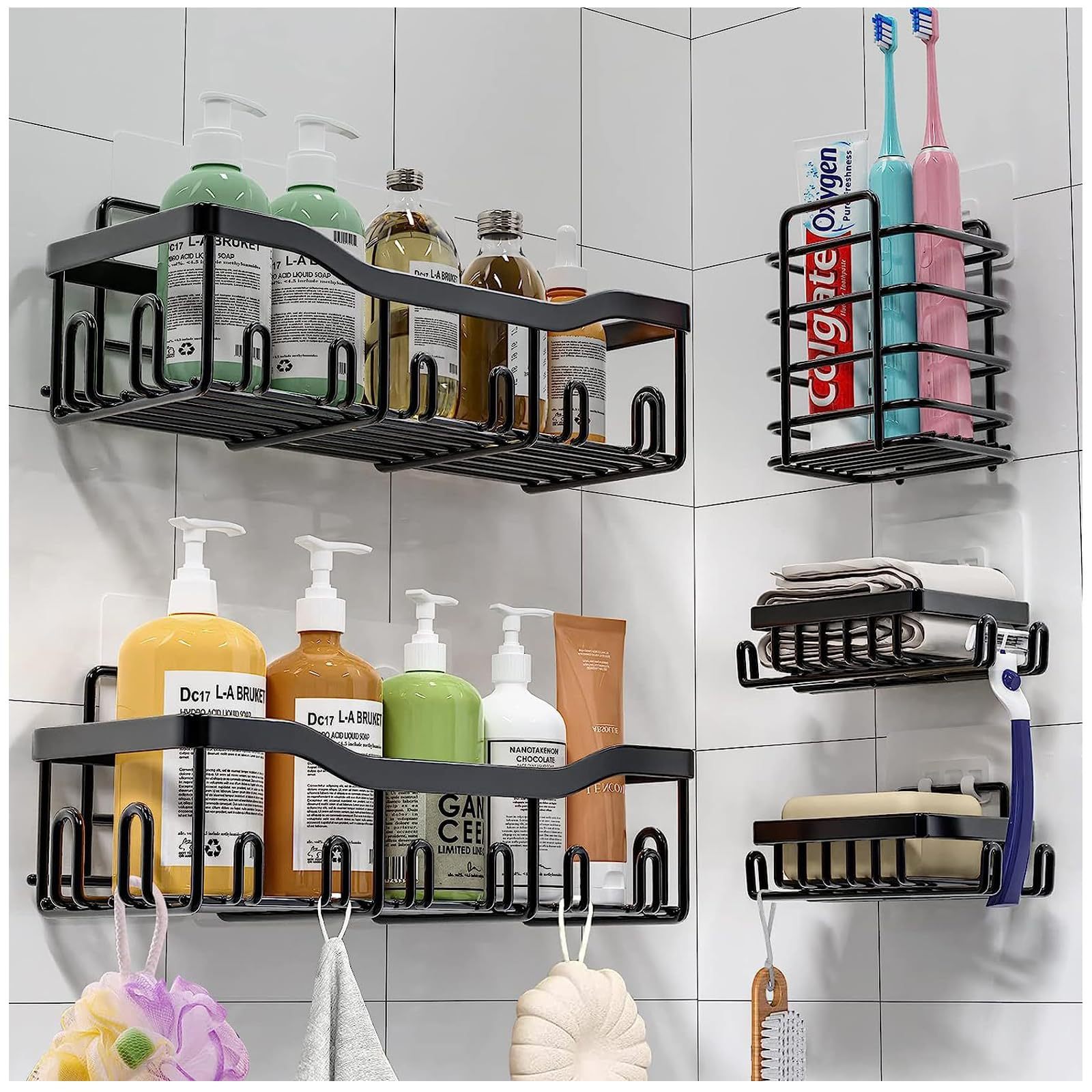 6 個のシャワー収納ラックスタイリッシュなバスルームキッチン収納と収納オーガナイザー壁掛けバスルームラックパンチフリー