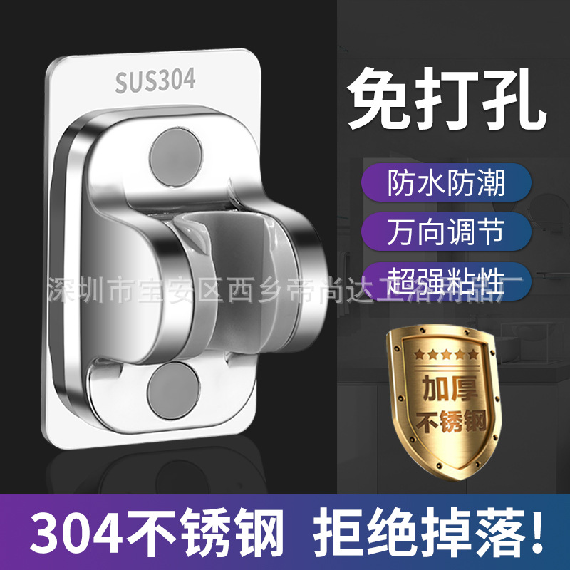 ステンレス鋼304製、穴あけ不要のシャワーヘッドホルダー、浴室用シャワーヘッド固定プラスチックベース、多方向調整可能なシャワーヘッド