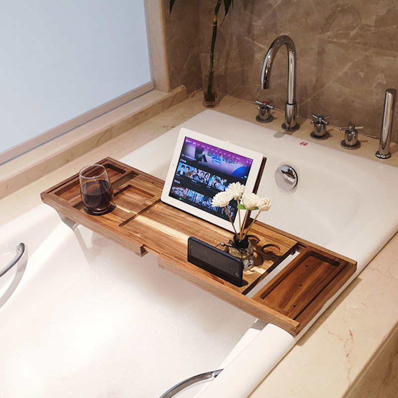 伸縮可能なバスタブの棚のトレーは軽くて豪華です。