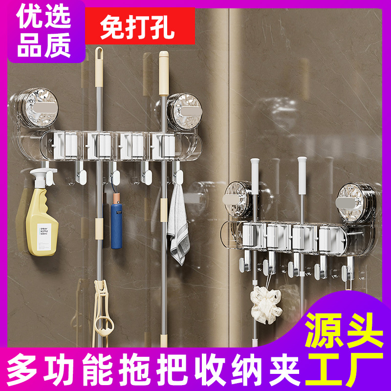 多機能吸盤収納棚家庭用モップクリップトイレ整理穴なしモップブラシ壁掛けフック