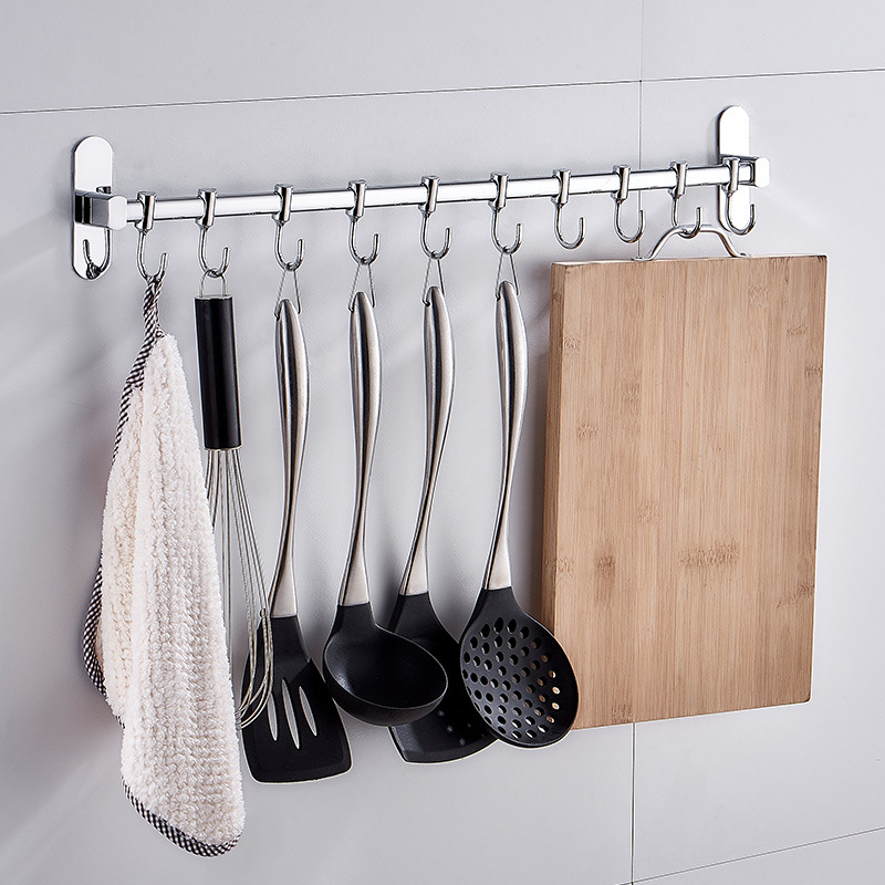 304ステンレス台所掛けポール壁掛け式穴なし活動フックフック調理器具整理収納棚