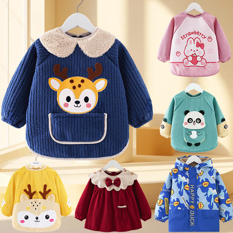 カバー赤ちゃん食事よだれかけ防水防油男女子供秋冬反着子供長袖エプロン赤ちゃん食事ポケット