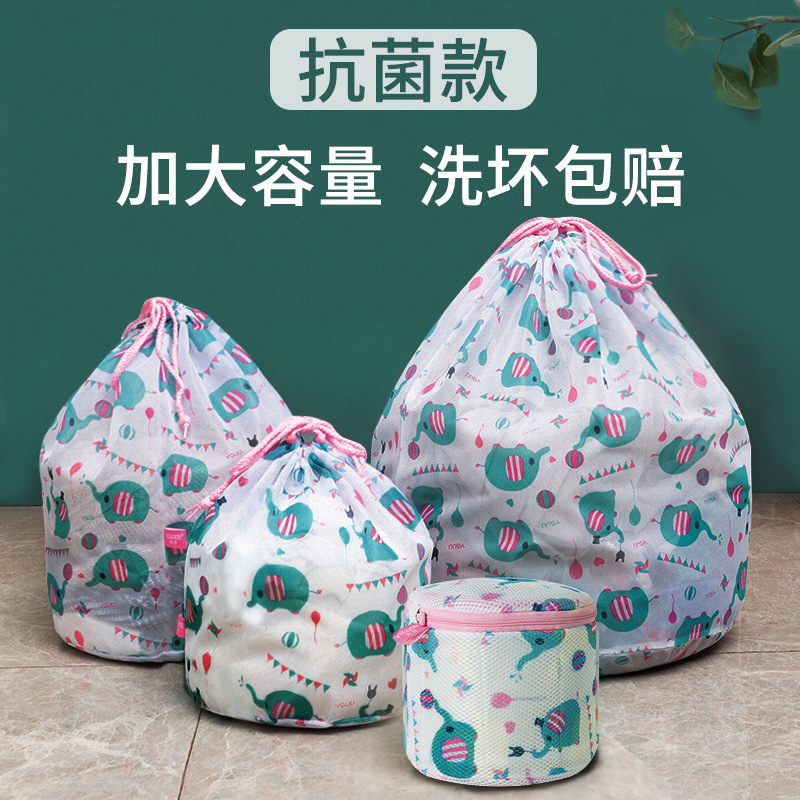 厚いひもの束口の洗濯袋の細い網の保護袋は谷の太い網によって縄を引きます。