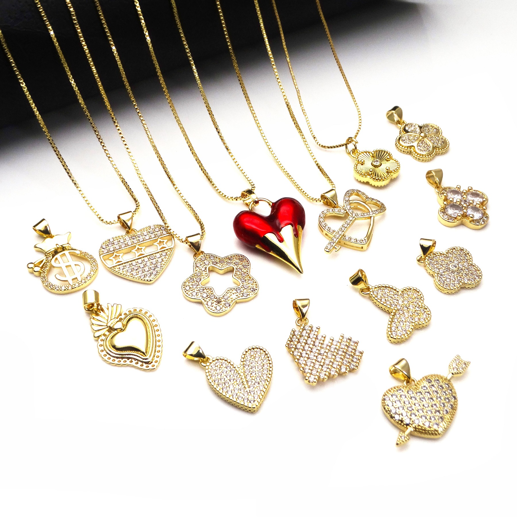小型ジルコン愛ハート型四葉草ペンダントネックレスネックレスペンダント箱チェーン動物蝶ペンダント銅アクセサリー