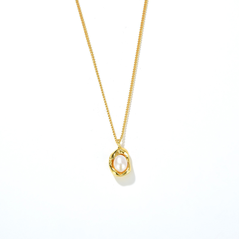 韓国東大門爆金s925純銀金メッキ欧米優雅フランス天然淡水真珠金銀色ネックレス