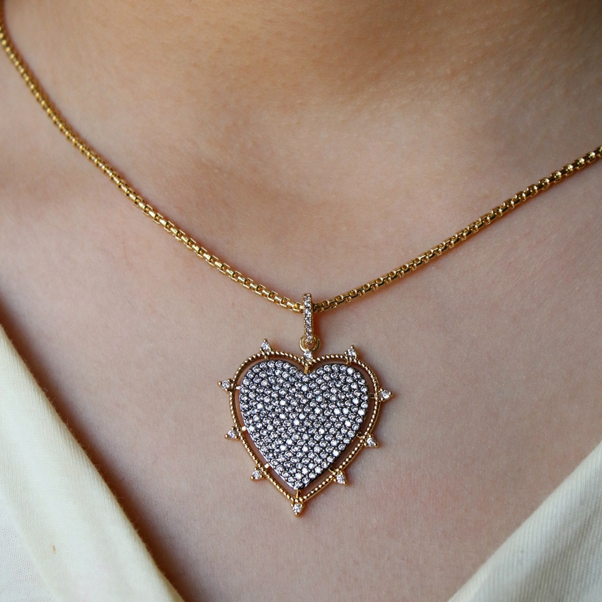ファッションol高級感愛ペンダント高保色銅メッキ真金マイクロジルコンステンレスネックレス