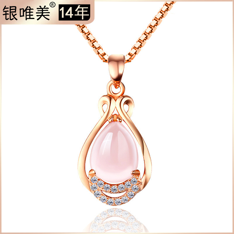 韓国スタイルの水滴ブルームペンダントクリソプレーズファッションルビーレディースペンダントネックレス翡翠露店卸売