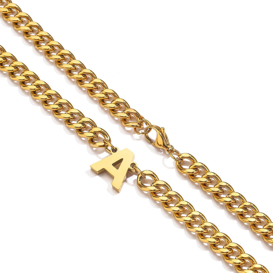 ヨーロッパとアメリカの姓ヒップホップステンレス鋼キューバチェーン 26 文字ネックレス 18 K ゴールド大文字ペンダントジュエリー