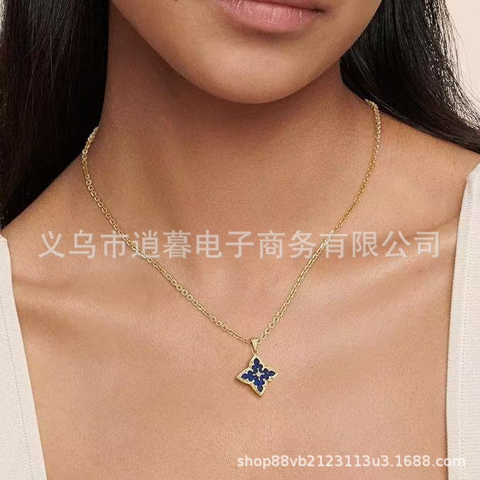 輸入ジルコン四つ葉のクローバーペンダントレディースネックレスゴールドメッキ低刺激性デザインライト高級鎖骨 2025 モデル