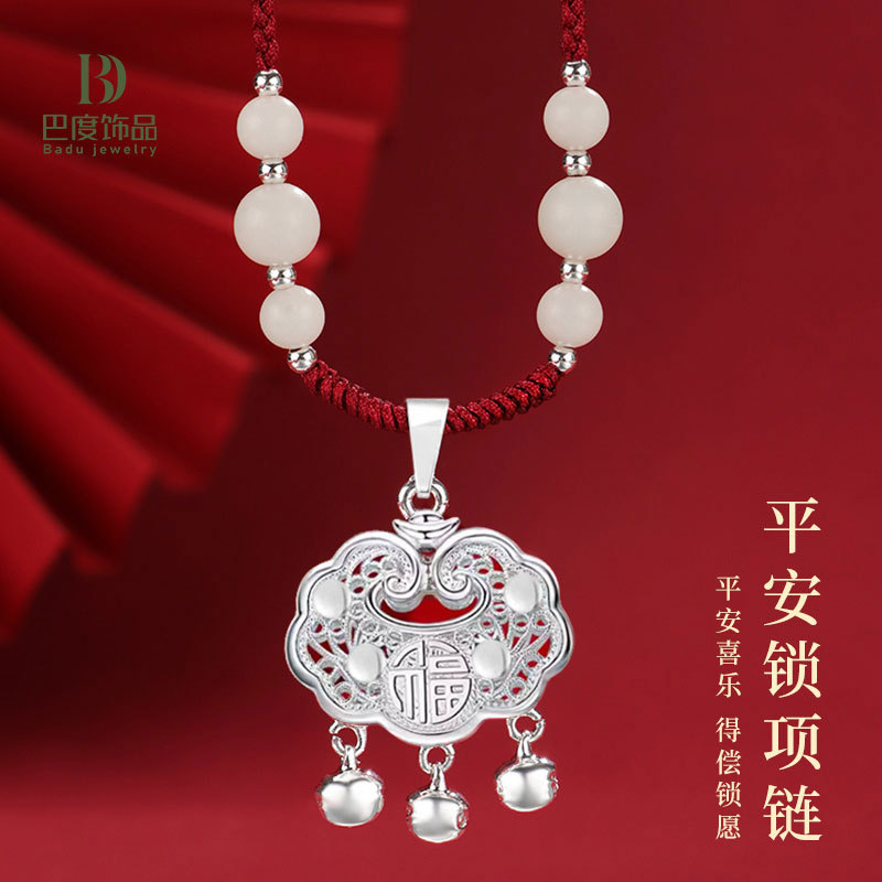 巴度の新商品の鈴は意のままにロックして赤い縄のネックレスを編みます。