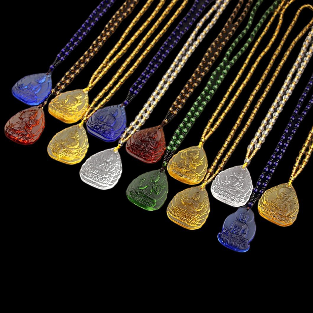 黄瑠璃文殊菩薩ペンダント緑度母薬師仏ネックレス観音仏男女ペンダント地蔵王財神爺