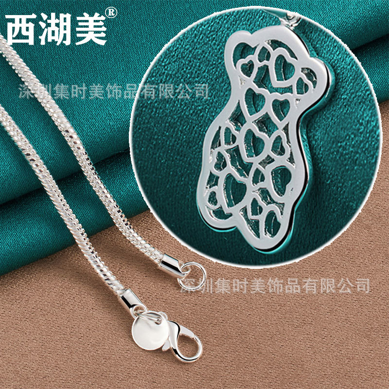 透かし彫りの愛の熊のネックレスのペンダント蛇の鎖の女性のアクセサリの細い鎖のアクセサリーの西湖の美しい銀の装飾品