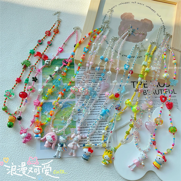 かわいいケイティkt猫のネックレスの女性の夏の鎖の小さい大衆のデザイン感の甘いクールなギャルの風の親友の首の鎖は百合します。