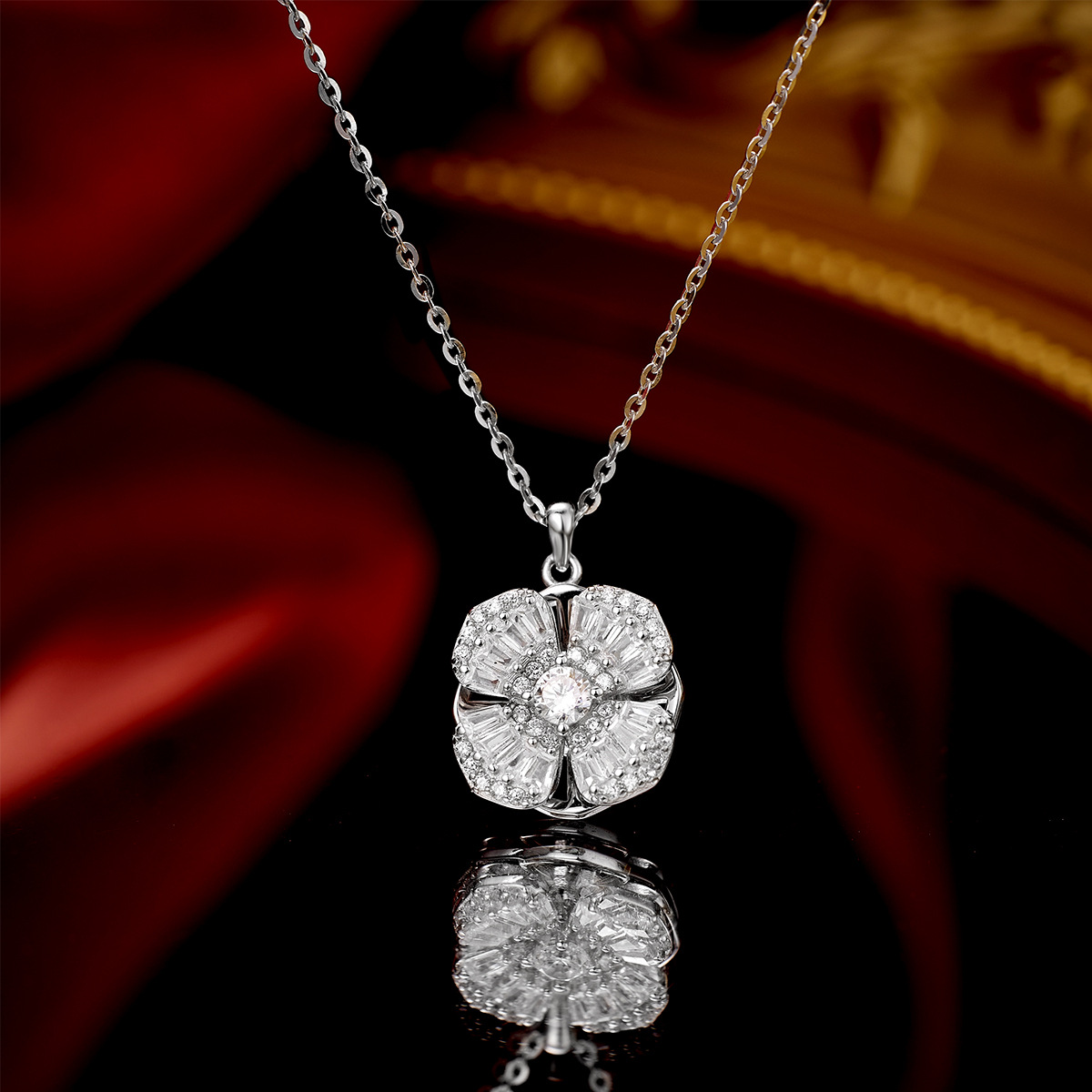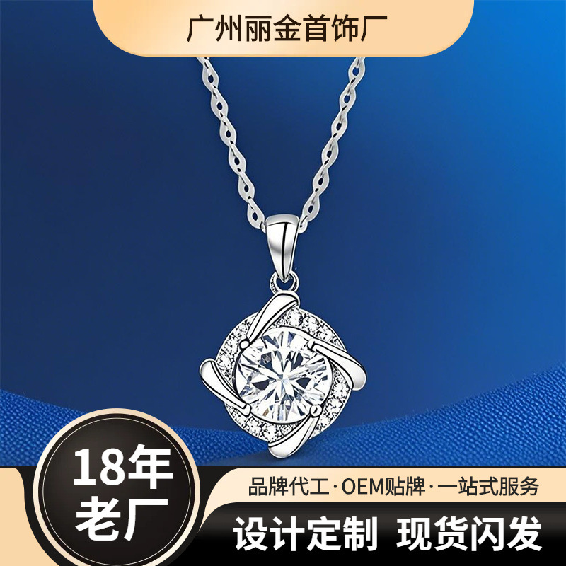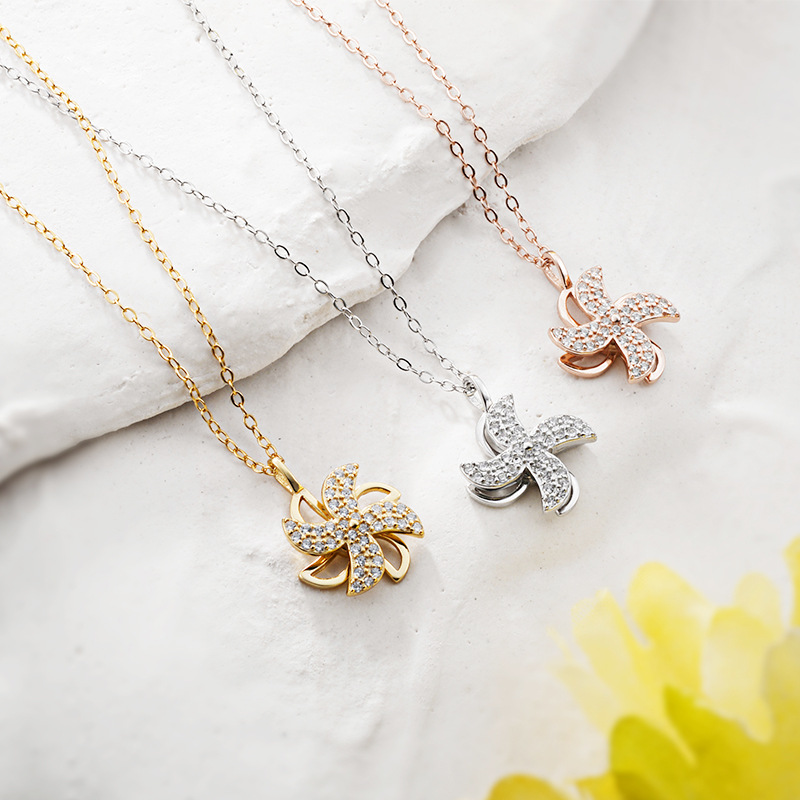 銀城s925純銀回転四葉草ネックレス女性ファッション軽贅沢風車時にジルコニウム幸運草を運転する