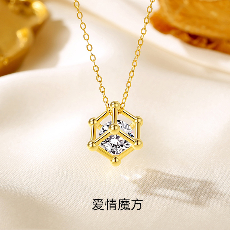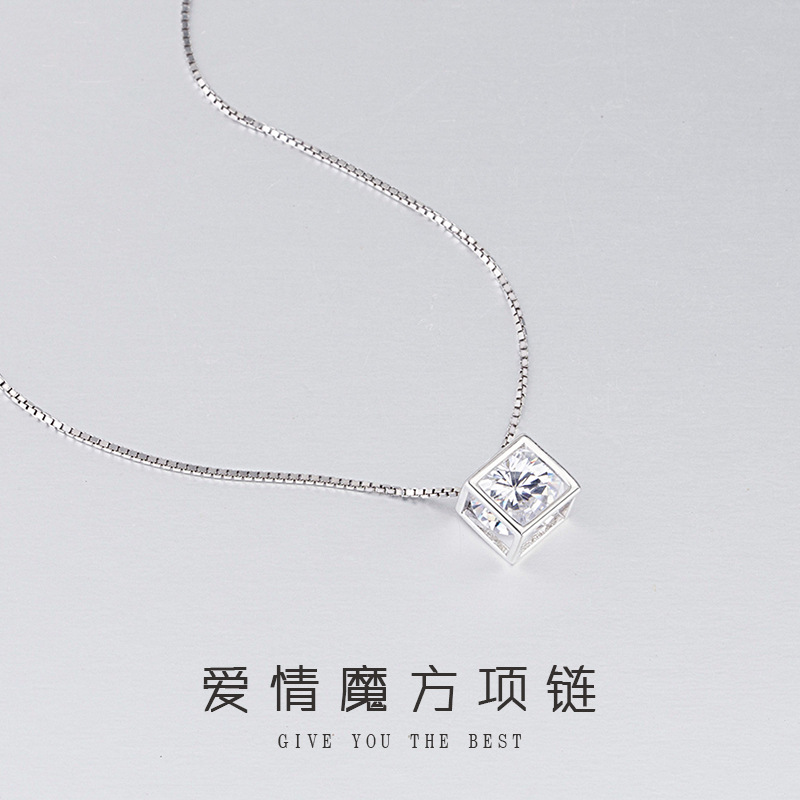 高级感S925シルバー恋爱ルービックキューブジルコン小さなキューブネックレス小众ペンダントネックレス女性プレゼント锁