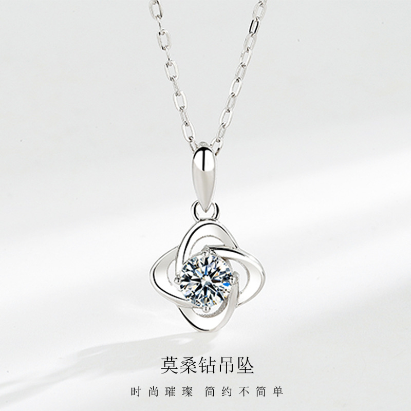 S925純銀網赤四葉草莫桑ドリルネックレス女性の軽豪華な気質鎖鎖シンプル韓国版風車アクセサリー