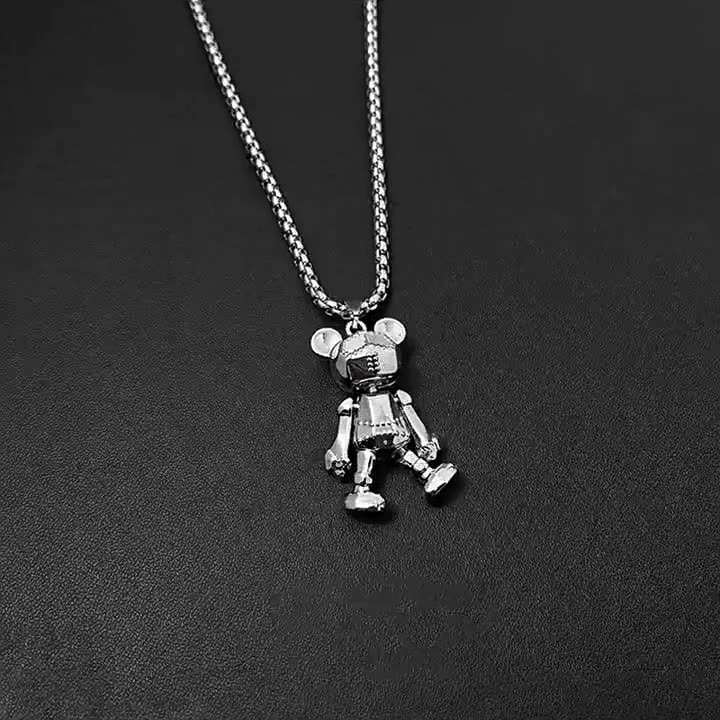 新型四肢可活動デジタルベアネックレス男潮ヒップホップパンク長型百合毛衣チェーンネット赤ペンダント