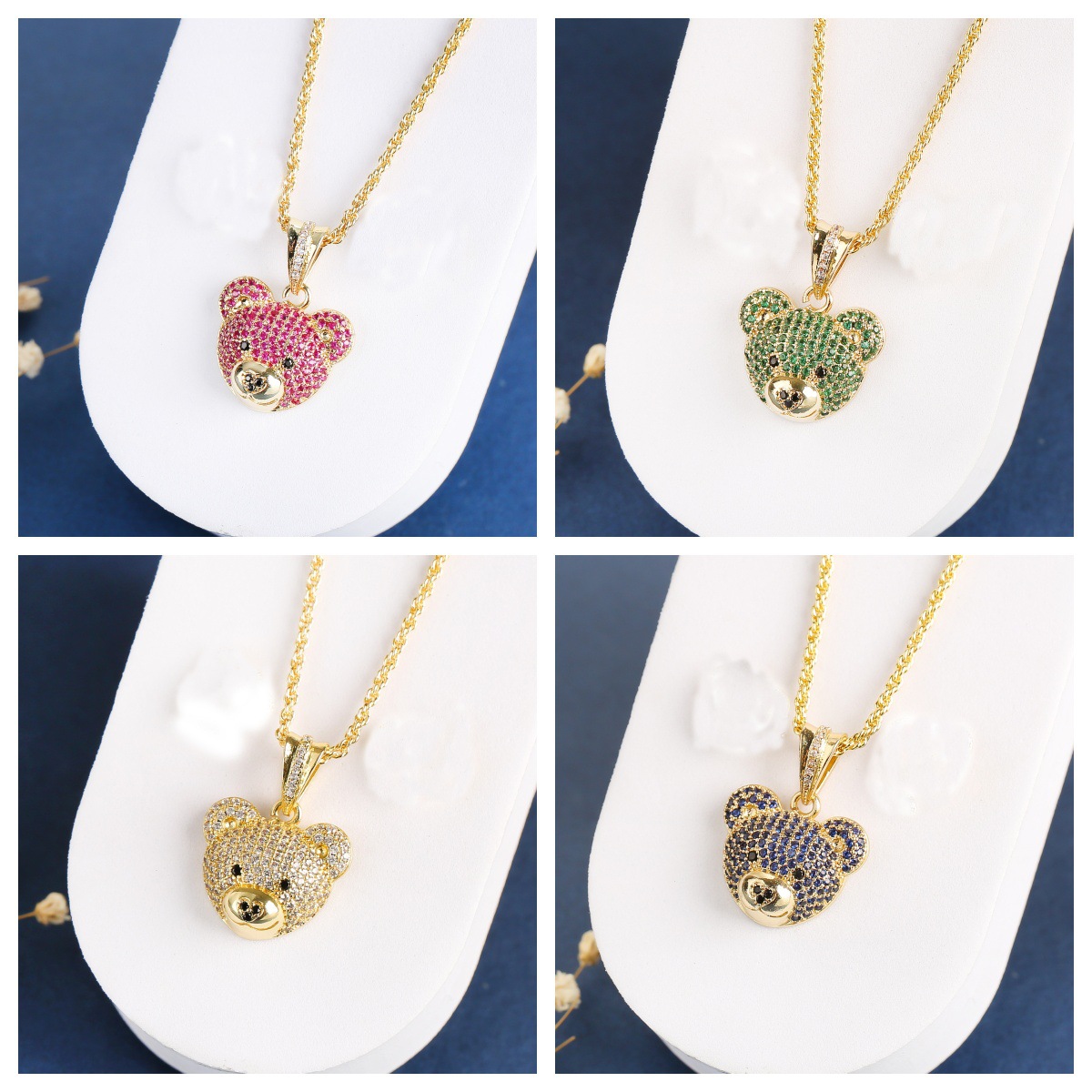 立体的な形の熊のネックレスのペンダントはいっぱいになっています。