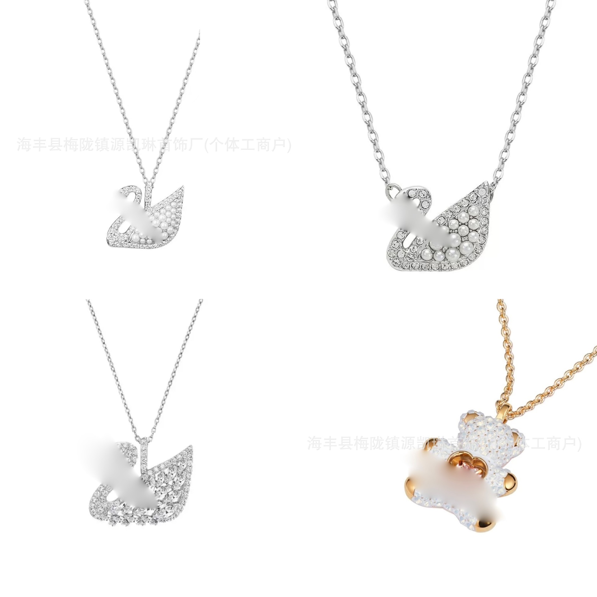 Shijia スマートテディホワイトベアネックレスパールスワンライト高級ニッチ多用途マウスアイスワンネックレス工場