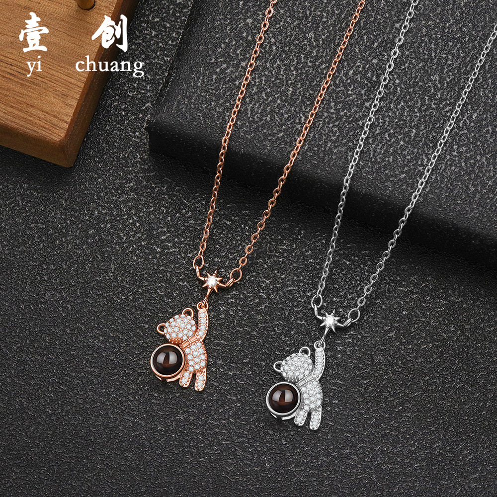 Amazon Star Bear 100言語フォトプロジェクションネックレスヨーロッパとアメリカのクロスボーダーライト高級ハイエンド鎖骨チェーン