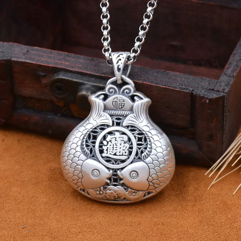 2023新型双魚福銭袋s999足銀復古女性純ペンダントセーターチェーン長型民族風