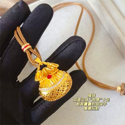 砂金福袋のペンダントの女性の透かし彫りの財布のネックレスの卸売りの黄銅の金メッキの999は本当に黄金色のファッションのペンダントに似ています。