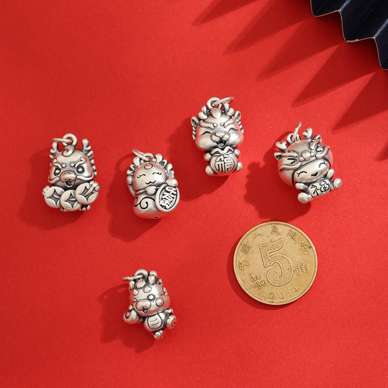 生肖龍ネックレス足銀ペンダント赤ちゃん子供男性女性純銀レトロ龍年本命年新年プレゼント