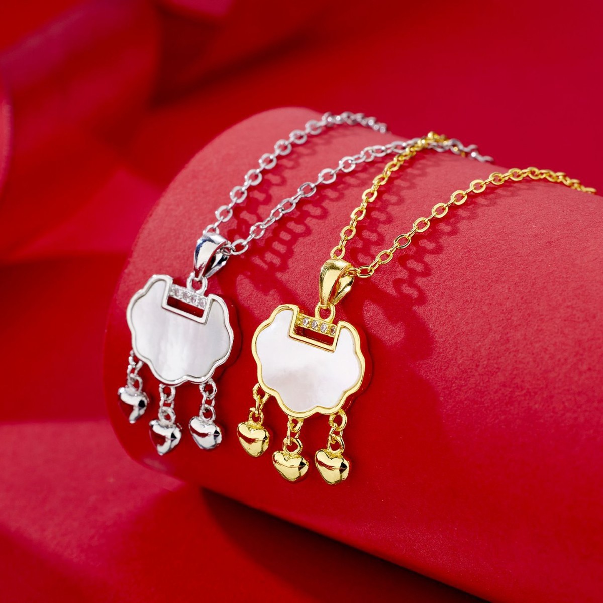 銀爵s 925純銀米多銭袋国風福字貝母ネックレス小衆軽豪華デザイン感鎖骨チェーン