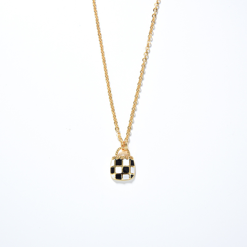 S925銀メッキ18k金韓国起爆レトロ盤格金銀黒と白の財布ネックレス女