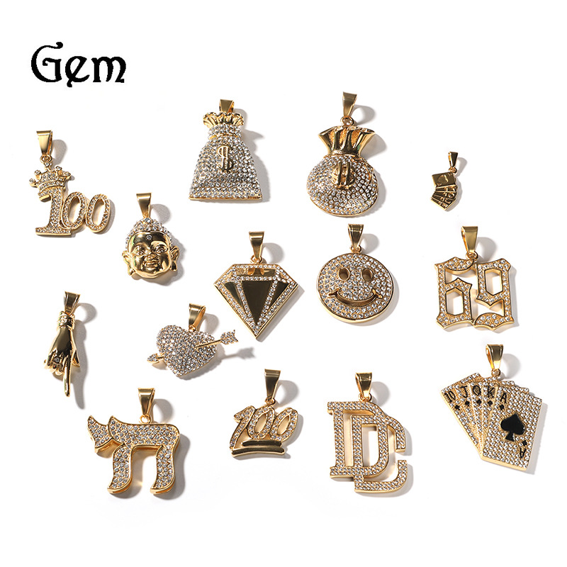 欧米のクロスボーダーの熱売ステンレスの真金の電気めっきのお金の袋のアルファベットの数字のヒップホップの潮流のペンダントの小さい大衆の装飾品