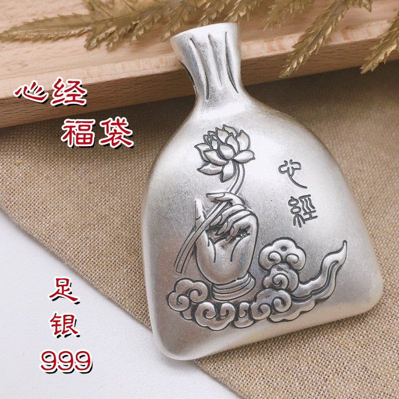純銀 S999 タイシルバー福袋ペンダントレトロ古い般若心経マネーバッグ仏手蓮車ペンダントセーターチェーンネックレス