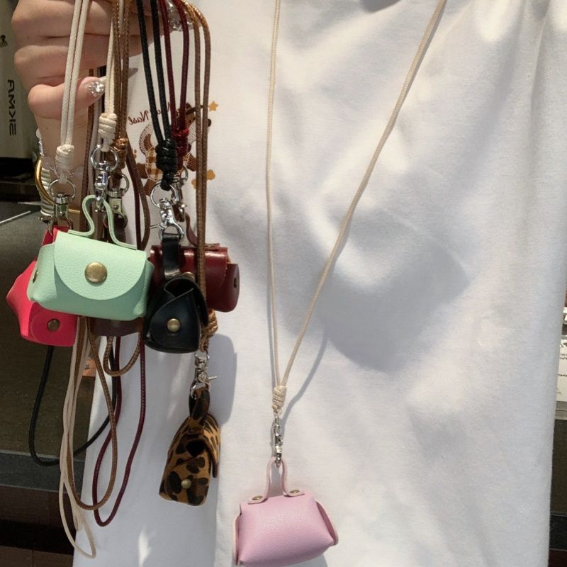 韓国の博主は同じタイプの大衆デザインの革の小銭入れの首のネックレスを掛けます。