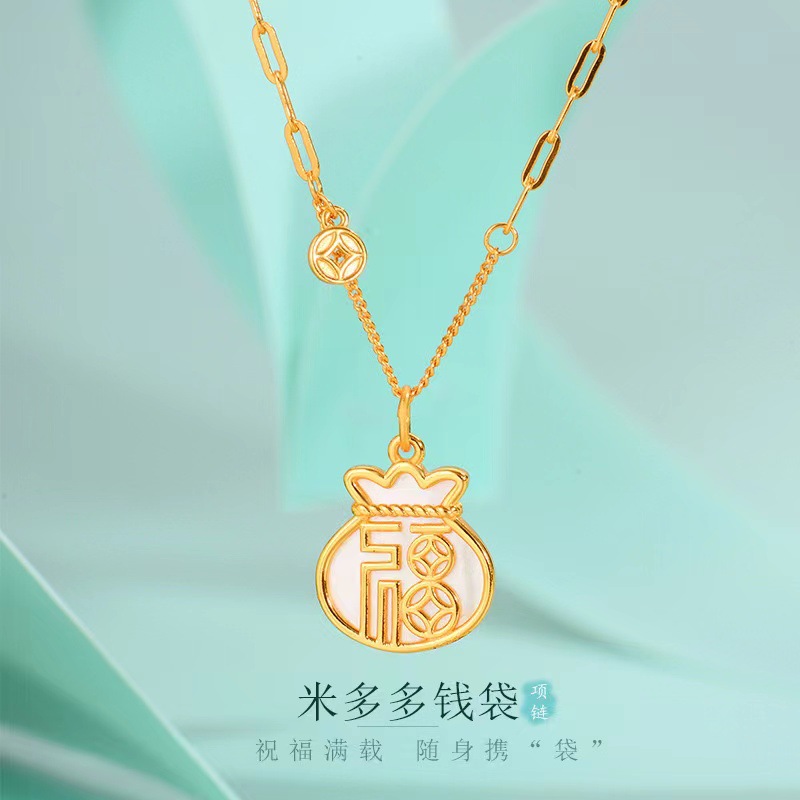 メーカー直販の新型福袋ペンダントネックレス透かし彫りの福の字のお金の袋の鎖の骨の鎖は親友の誕生日のプレゼントを送ります。