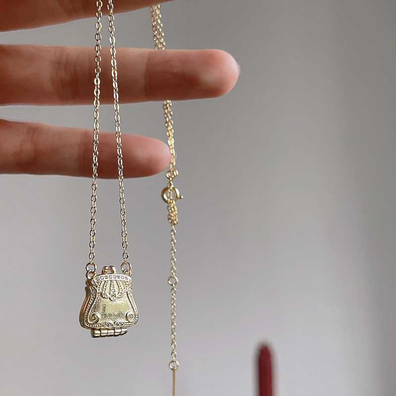 S925純銀ネックレス女性霊動銭袋福袋ペンダント国風デザイン気質鎖骨鎖ファッション軽贅沢首鎖