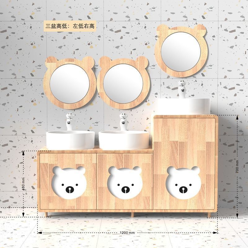 幼稚園子供用バスルームキャビネットセラミック一体型洗面台オーク洗面台キャビネット組み合わせバスルームキャビネット洗面台