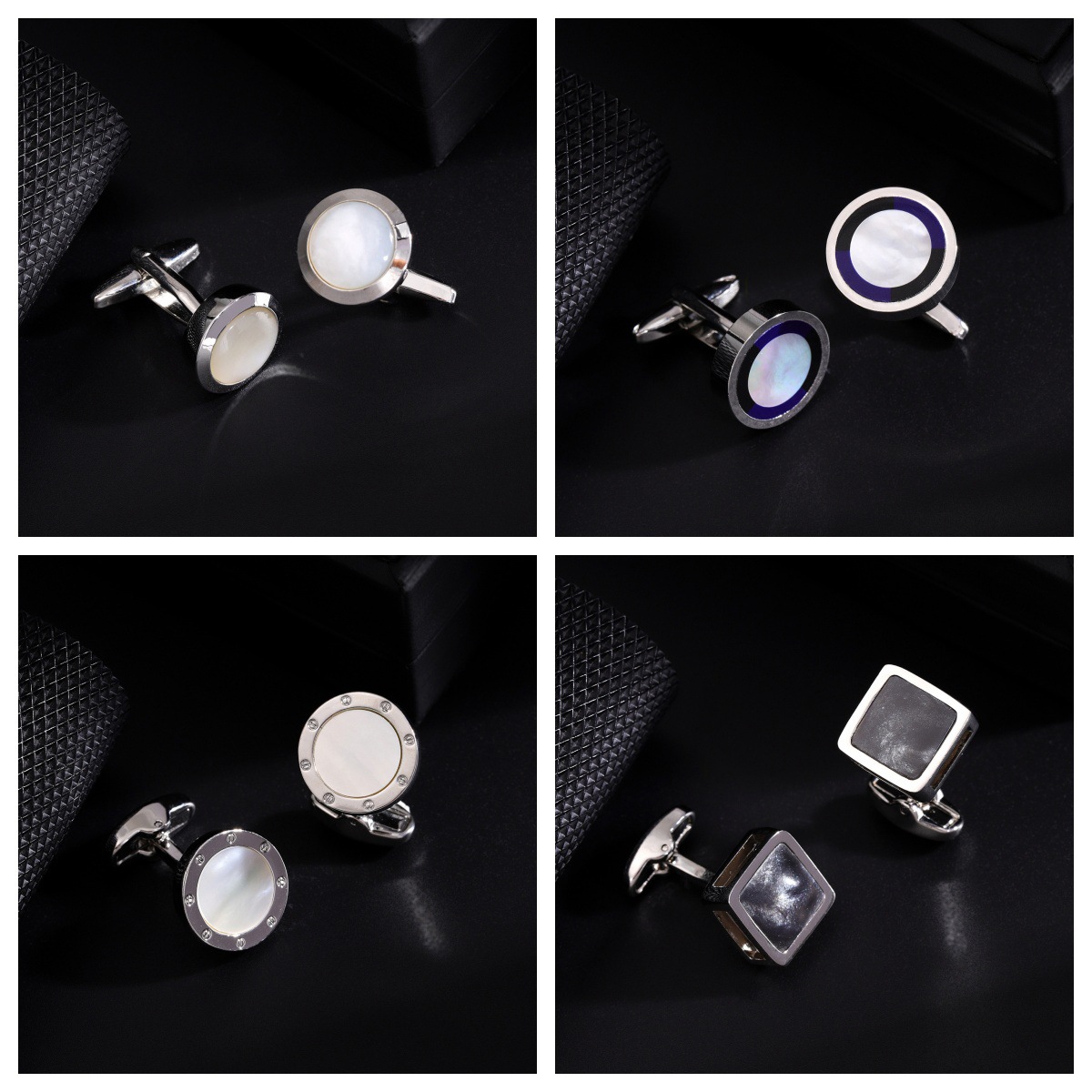 東莞カフス925銀真珠貝殻フランスカフスファッション円形天然貝母銀カフス釘